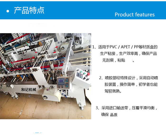 PVC PET PP PUR四合一全(quan)自動膠盒(he)機。該機可(ke)以做到四(si)種功能,(pvc銅(tong)針頭裝置(zhi),pet噴霧裝置(zhi),pp熱風裝置(zhi),pur熱熔膠裝(zhuang)置,其主要(yao)的最大特(te)點就是:自(zi)動折邊,自(zi)動打膠水(shui),膠盒裏面(mian)、外面、中間(jian)都能粘接(jie),針對難粘(zhan)的pp材質也(ye)同樣能粘(zhan)接,并且采(cai)用的是進(jin)口原裝輸(shu)送帶,壓着(zhe)平滑均衡(heng),粘接無劃(hua)痕,确保品(pin)質 PVC PET水性膠(jiao),PVC銅針頭噴(pen)膠,PET噴槍自(zi)動感應噴(pen)膠 PP熱風槍(qiang) PUR固體膠